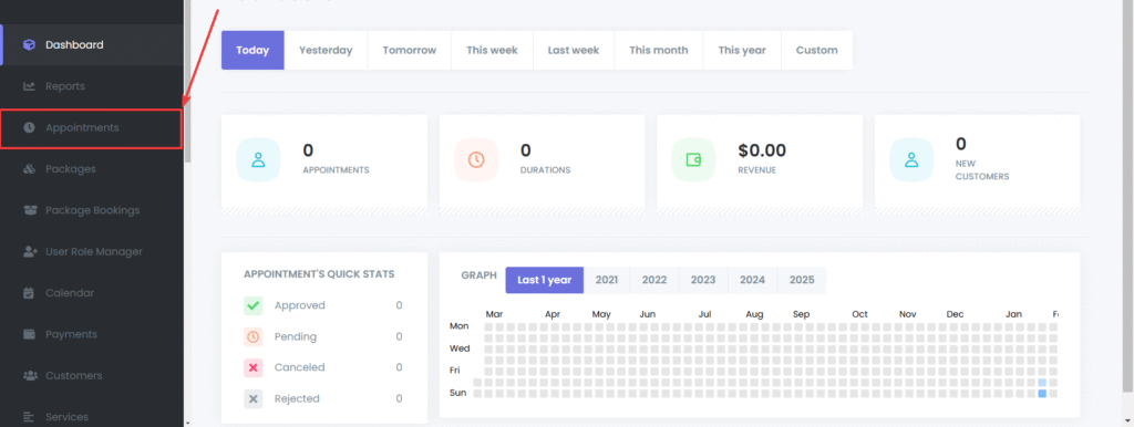 Select the Appointments tab to open the appointments interface.
