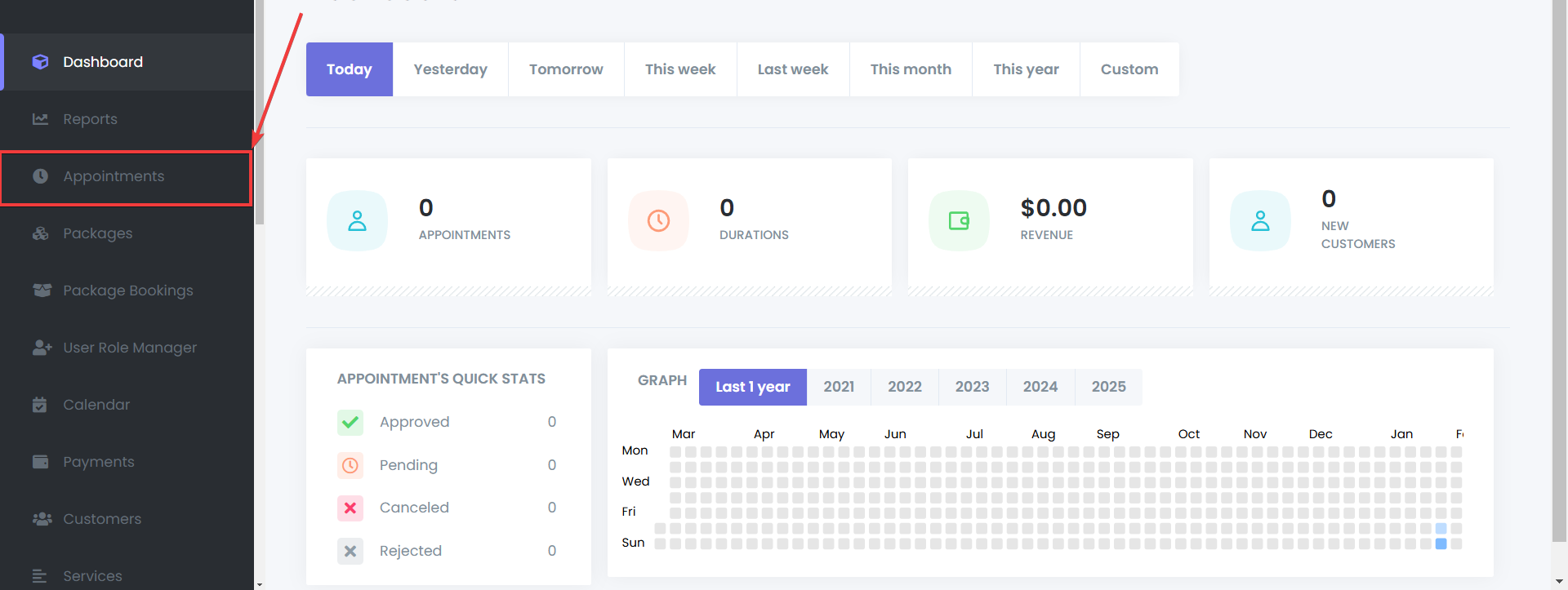 - Click “New Appointment” in the Appointments Menu.