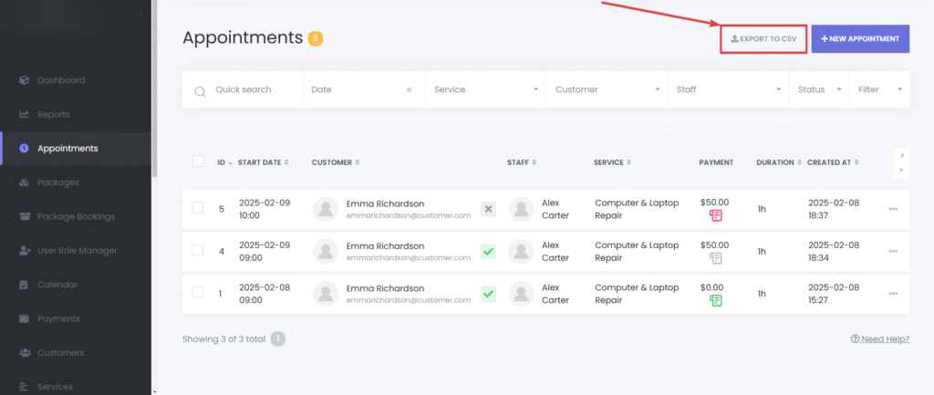 Export to CSV – Export your current appointments to a CSV file easily.
